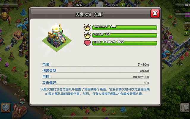 天鹰火炮虽然在众多建筑当中覆盖范围最广,但是担当起最强建筑称号也是有点虚的!