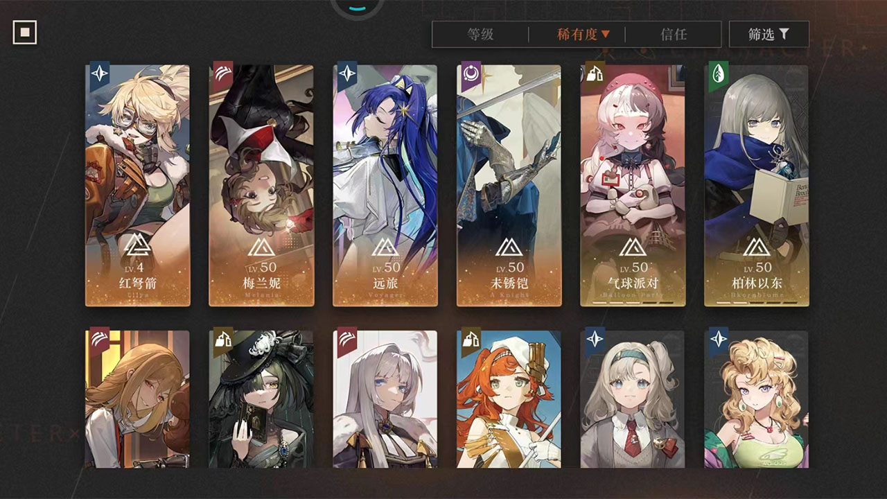 在前期的时候,我们大概是只需要培养6张卡牌角色的,不要管是不是目前的主流T0位,最好是两种不同灵感的六星输出卡牌,这样就可以做到轮换进行关卡挑战;在辅助位上的选择相对要高一点,最好是那些能够在1阶就能启动的万金油辅助拐,像柏林、安安这种无条件给队友或者是敌方施加增减益buff,又能为主C补充伤害的卡牌。最后就是奶妈,这一点其实没有太多的讲究,星级高就行,星级越高属性越强相对应就能站的越久,也就能让队友输出到最后。