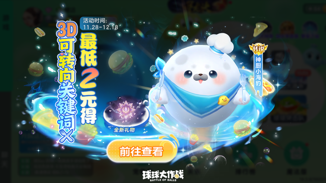 活动时间:11月28日-12月18日-你的操作超下饭,我还能吃两大碗!波拉哩美食大师「神厨小海豹」手握刀叉捕捉对手的下饭操作!