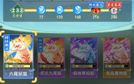 1.购买蓝品【六尾妖狐】部件,提升至【特性激活】节点;