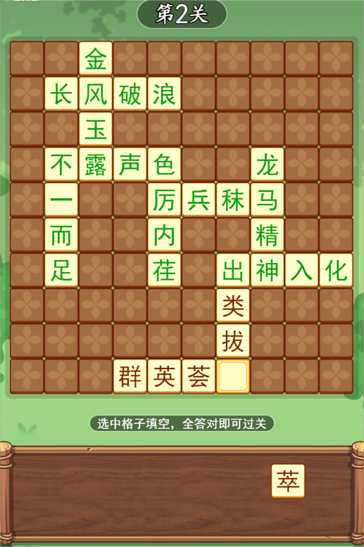 2、将下方待选区的汉字正确填入所有空缺的成语中,即为通过关卡;