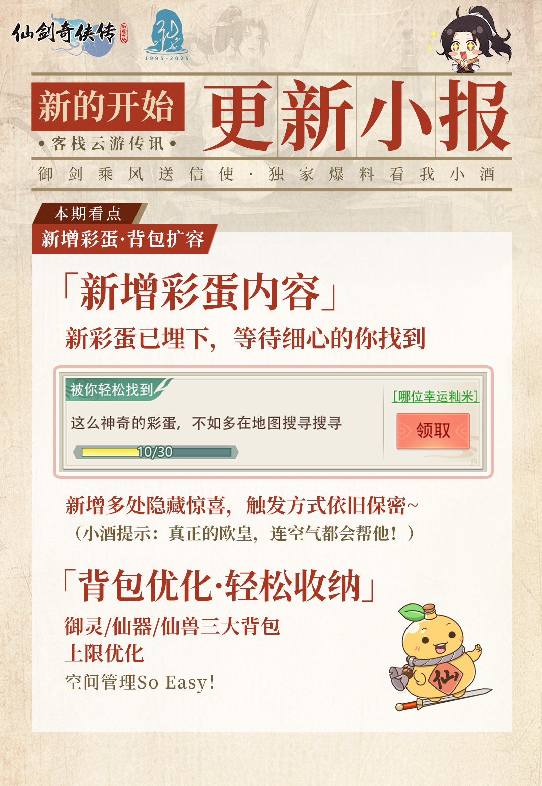 背包优化扩容:御灵/仙器/仙兽背包上限提升,收纳整理更轻松!