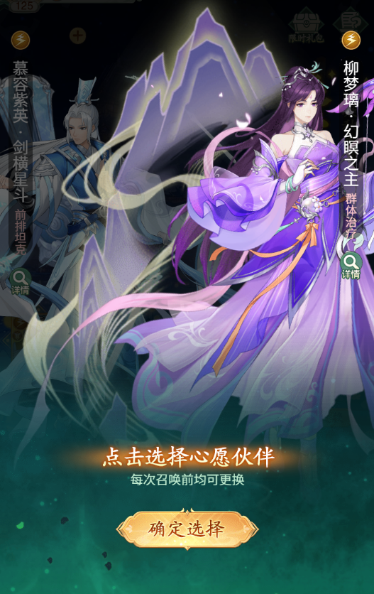 活动期间可抽取限定伙伴【慕容紫英·剑横星斗】&【柳梦璃·幻暝之主】,在限定伙伴up池——【慕容紫英·剑横星斗】&【柳梦璃·幻暝之主】之间选择需要抽取的伙伴,选定后可在界面更改已选择的伙伴。