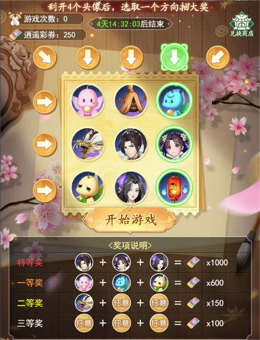 6、游玩获得的【逍遥彩券】可于兑换商店兑换奖励