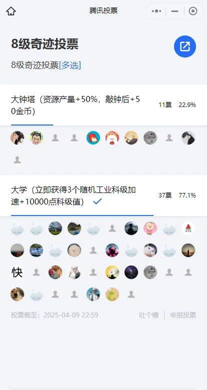 答:关于科技玩法,我理解他有两个分支:个人科技和联盟奇观,前两天我们盟还在说这个到底是先建加资源的奇观(大钟塔),还是先建这个加科技的奇观(大学),这是对应两个发展方向的,当时还群里还投票了。