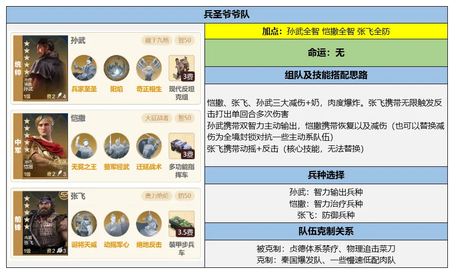 1、自带开场技能相对稳定,有减伤+恢复+增伤,触发方式简单,能配合多段伤害英雄,组建一些慢速肉队。