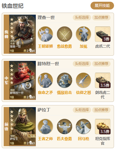 选择推荐:非常适合理查一世或者库佩的菜刀队,用理查一世推荐选择。