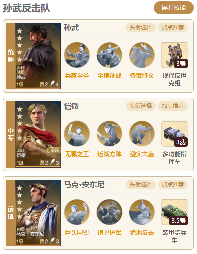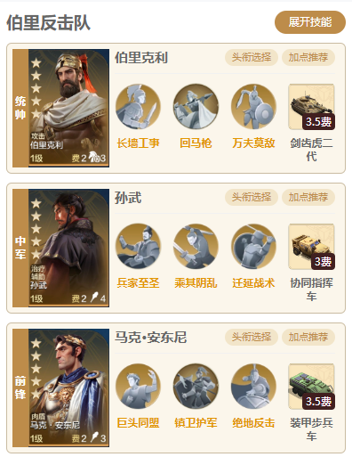 技能点评:可克制敌方伤害能快速到达这么多次数的阵容,如伯里克利、孙武、安东尼等。