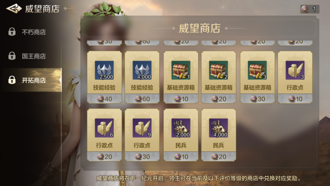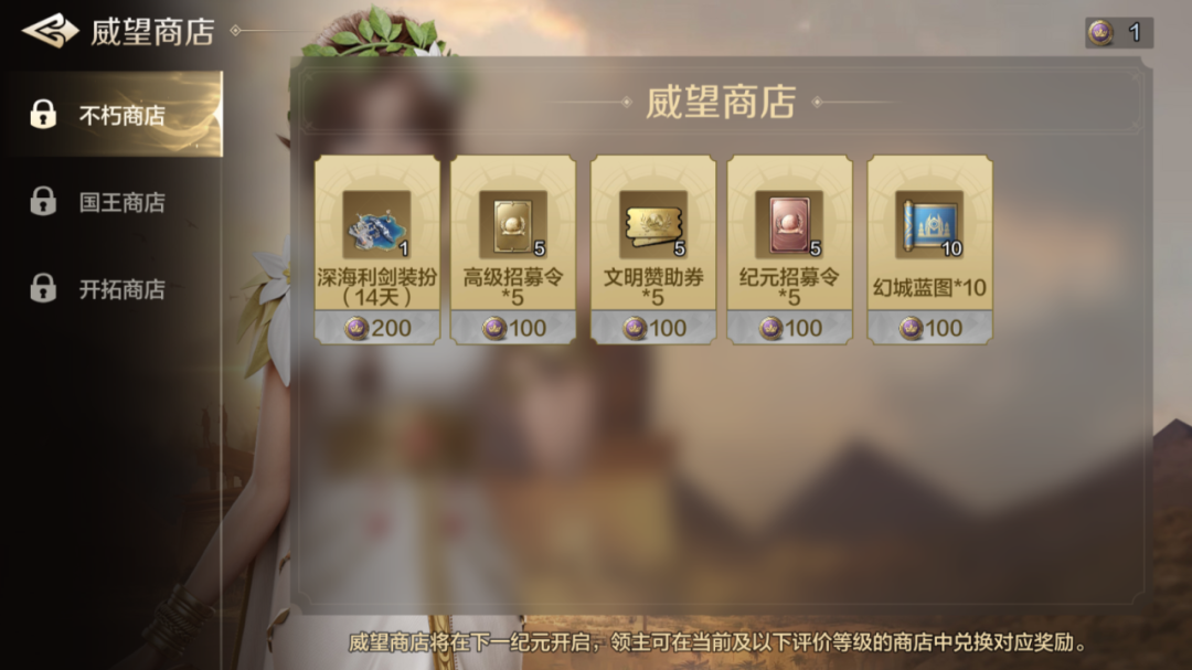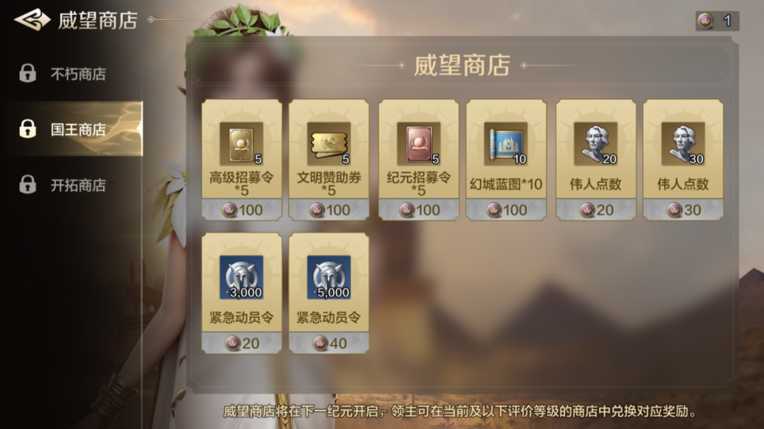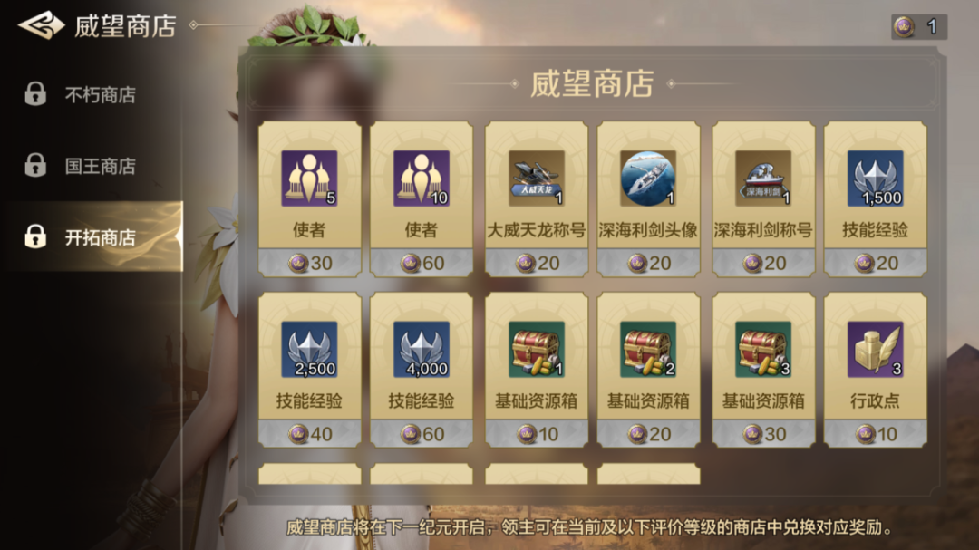 同样,大家也可以通过游戏内【排行】中的【纪元说明】-【查看威望商店】查看威望兑换奖励,在新纪元开启后,通过游戏主界面入口进行兑换。