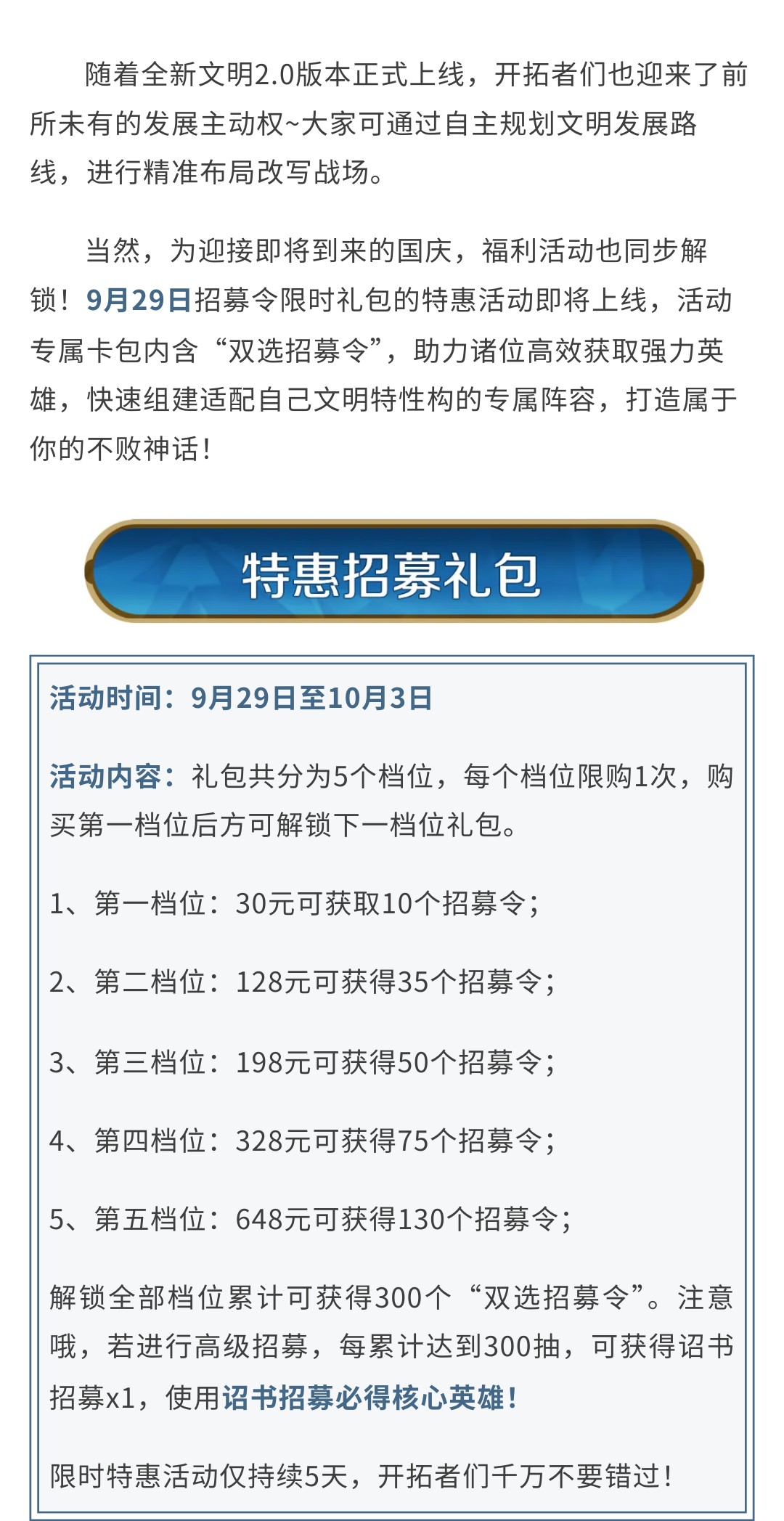 新活动爆料丨国庆限时特惠礼包,累计可得300抽!