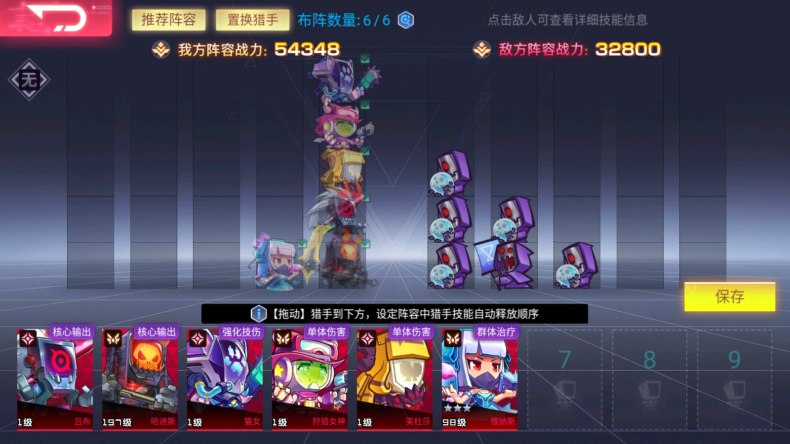 不同的猎手拥有的技能各不相同,您需要根据猎手的职业和技能进行布阵。重装、先锋职业的猎手以近战和防护为主,理所应当被放置在最前排抗伤;狙击、辅助、特攻职业的猎手以远程输出和支援为主,他们的防御能力较弱,放在后排可以优化生存空间,发挥优势保证输出或治疗。