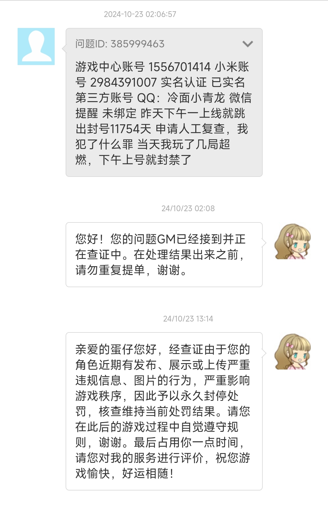 审核的都是人机回复?我没干过的事情实按在我头上?真把玩家当狗了?