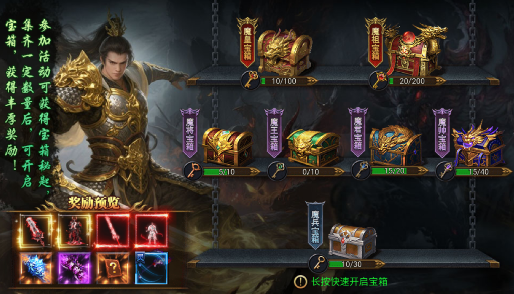 区服奖励根据区服闯关的最高层数排名,全服玩家皆可领取,一起为集体荣誉而战!