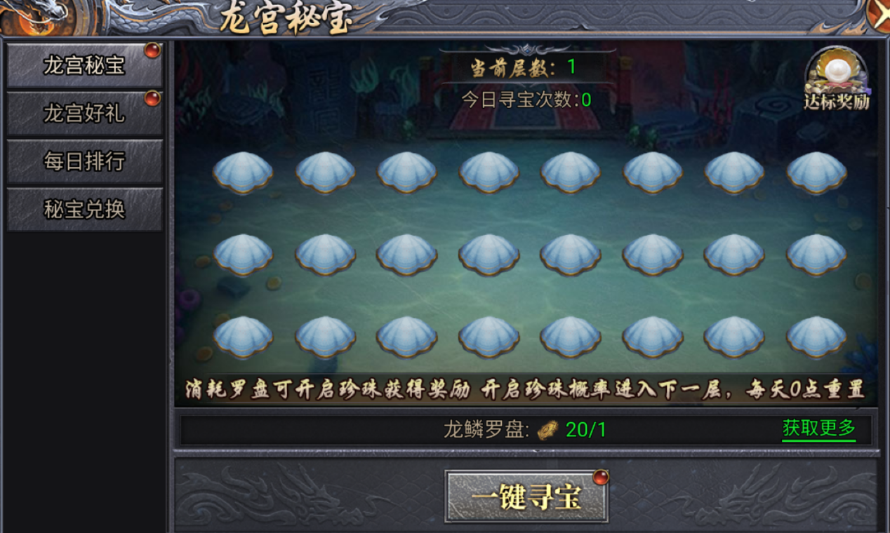 珍珠开启有概率进入下一层,达到指定层数时可获得额外的龙鳞令牌、神兽内丹、剑修圣印奖励。