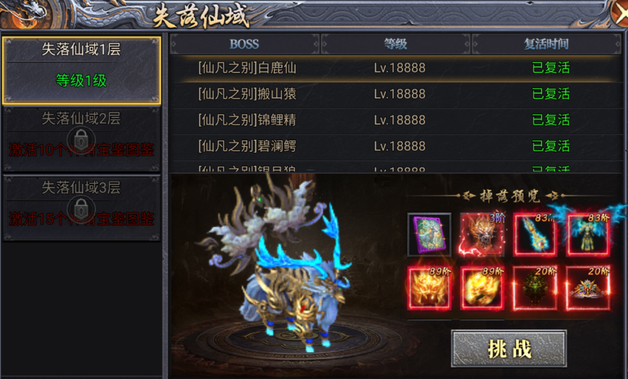 达成图鉴收集条件后,可进入更高级别仙域地图,迎战更强BOSS,奖励根本停不下来!