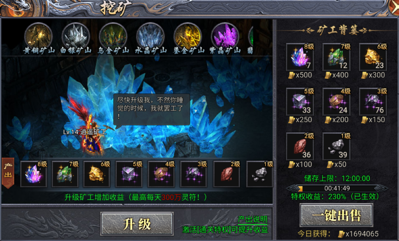 挂机躺平也能当矿老板!挖矿系统24小时自动印钞,顶级矿山日入300万灵符,这才是真·躺着赚钱!