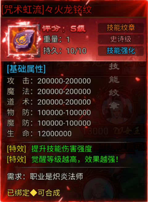 BOSS掉落不同技能纹章,镶嵌后可获得强力效果加成,战力飙升不是梦!