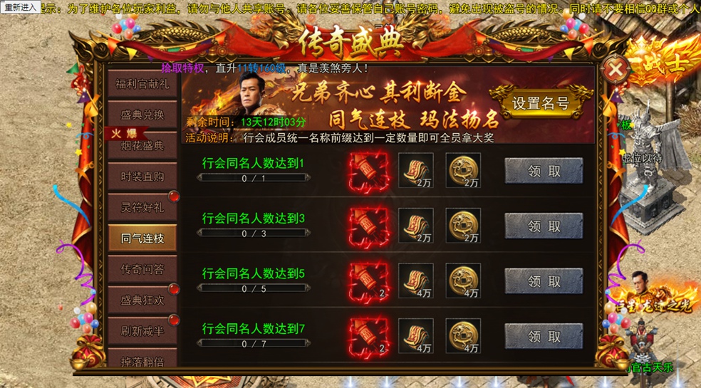 行会成员同名前缀达标,全员可领烟花、灵符等豪华补贴!兄弟齐心,荣耀加冕~