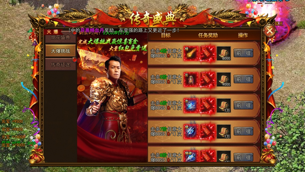 接受挑战,锁定目标!活动期间,玩家在新服猎杀指定品阶大爆BOSS即可领取丰厚悬赏奖励!马上前往击杀,这就是你实力的证明!