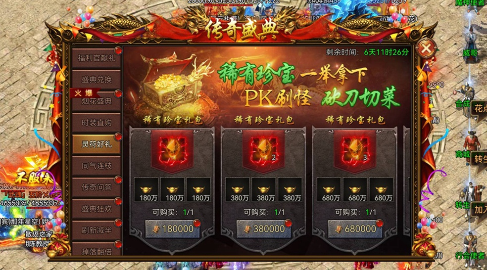 活动期间,内含稀有道具「装备升星石秘宝」的直购礼包惊喜上架,使用灵符即可直接获得。不用肝副本抢BOSS,解放双手快来抢购!