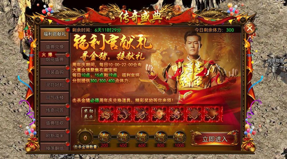 每日10:00-22:00开放藏宝阁地图,消耗体力击杀金猪,必得庆典兑换道具!