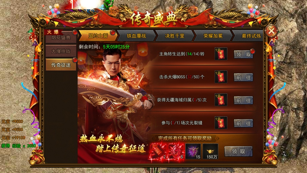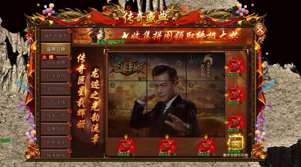 通过金猪活动、BOSS挑战掉落「盛典拼图」,集齐单行/单列或九宫整图可激活限定宝箱,海量秘宝与灵符元宝礼包拿到手软!