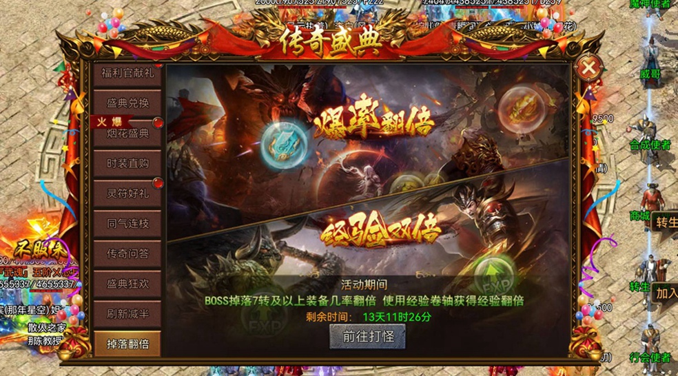 BOSS掉落7转以上装备概率翻倍!使用经验卷轴更享双倍经验,战力升级快人一步!