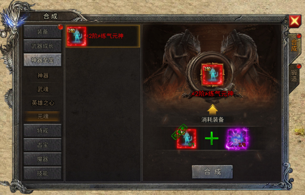 获得的元魂晶魄可在【合成系统-神器至宝-元魂】界面中用于提升元魂等阶。元魂等阶越高,玩家所能解锁的地图层级就越多。