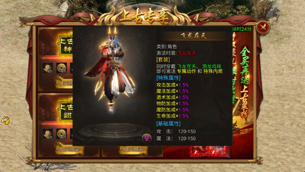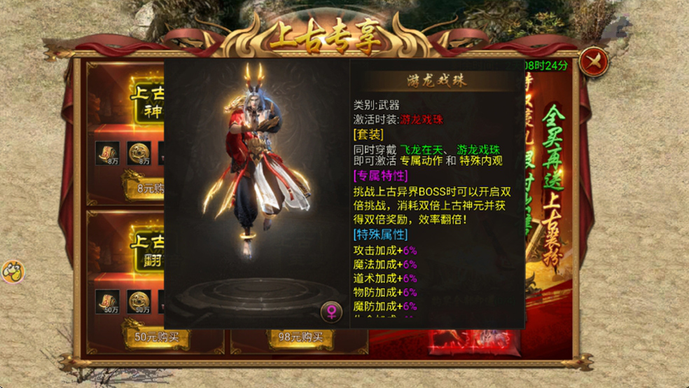 全特权激活奖励:时装【游龙戏珠】+双倍挑战功能(双倍消耗/双倍奖励)