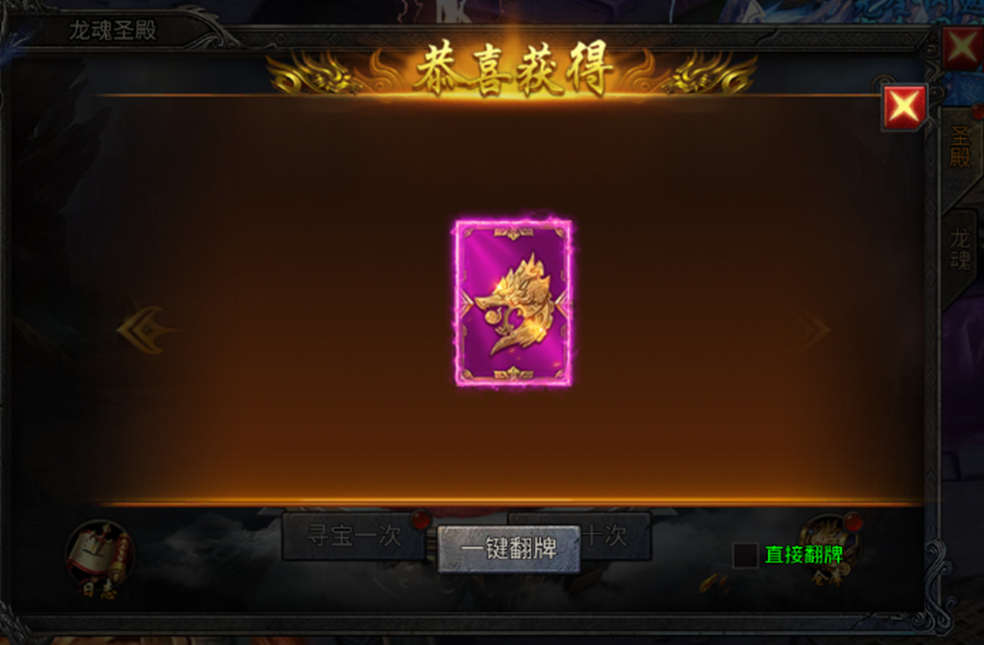 而龙帝秘钥可在龙魂圣殿的“龙帝秘藏”中进行寻宝,每次寻宝可获得随机卡牌。