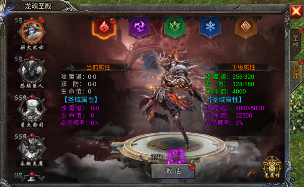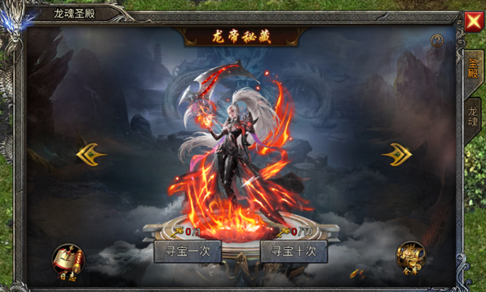在龙魂圣殿内,可使用龙帝秘钥进行龙魂寻宝,激活或升级龙魂能显著提升圣域属性。