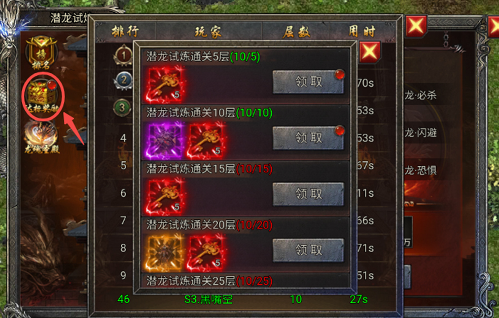 通过指定层数可获得对应数量的龙玉与元宝奖励。