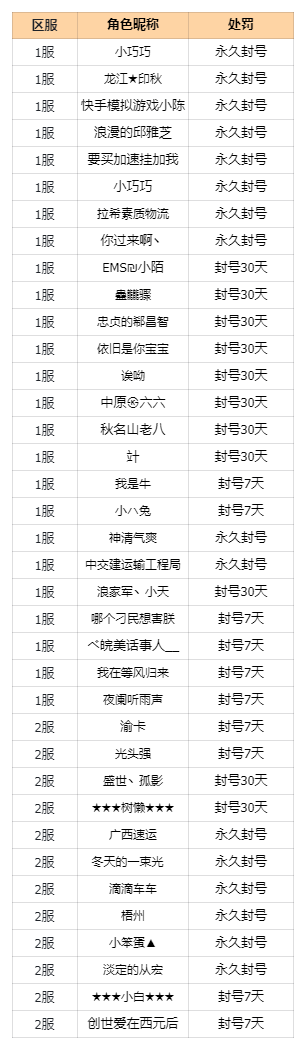 为保障卡友们的游戏体验,给大家提供健康的游戏环境,我们不断优化游戏内数据监测系统对游戏内使用外挂行为的检测和打击,并对核实违规的玩家进行封号处理。为确保信息的公正性,我们将定期对处罚名单进行公示。本期(2024年1月22日)处罚名单共计37名玩家,名单公示如下: