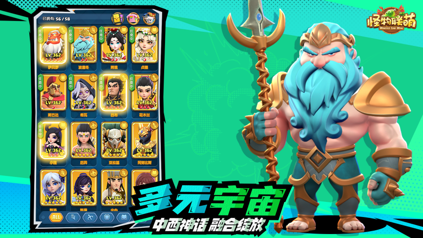 在《怪物联萌》中,数十位中西方神话英雄华丽绽放,五大职业各司其职,任您自由组合,打造独特的战斗阵容。每位英雄都拥有独特的技能,众多技能组合搭配,挑战您的策略思维。从东方的悟空到西方的宙斯,从古典的嫦娥到现代的剑圣,传奇英雄们在您的带领下,将以最华丽的姿态,共同迎接每一次战斗的挑战,为您带来一场视觉与策略的双重盛宴。