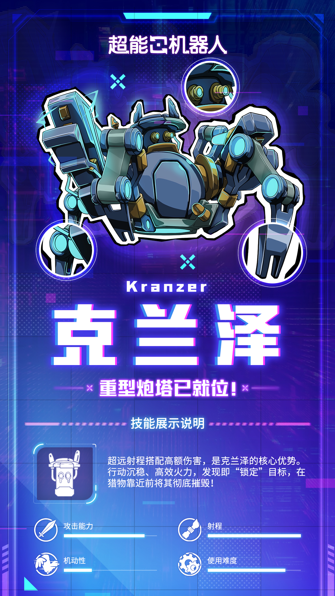 敌人火力太猛无法靠近!?克兰泽已准备好!召唤克兰泽,相当于拥有一把狙击枪,能够远距离绞杀敌人,尤其在选择射程短的武器,面对密集的炮火压制无法击中敌人时。克兰泽能够发挥其射程远伤害高的优势,让局势完成逆转并快速清理战场!