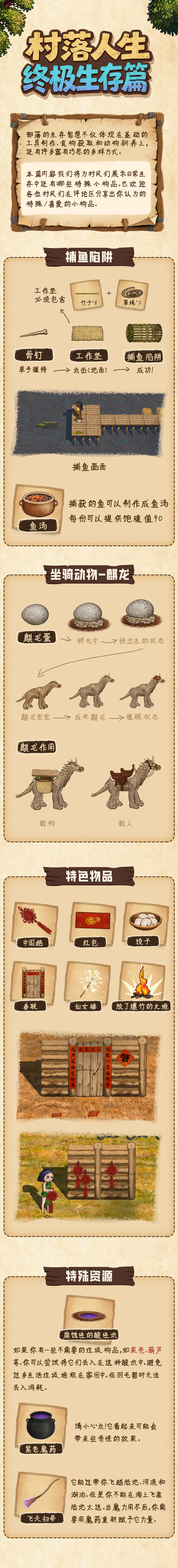 部落的生存智慧不仅体现在基础的工具制作、食物获取和动物驯养上,还有许多富有巧思的多样方式,例如捕鱼不止靠鱼叉,还能借助设计精巧的捕鱼陷阱;驯服麒龙后,出行变得更加便捷高效;部落中甚至能制作仙女棒和炮竹,为日常生活增添光彩与声响。这些方法不仅实用,更展现了村民们在部落中稳定生存后的创造力和生活情趣,让生存变得既有智慧,也有温度。
