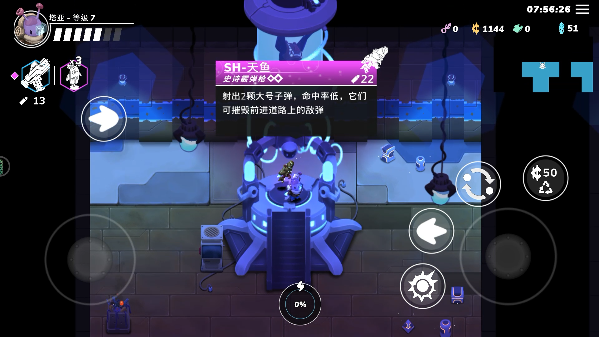 霰弹枪较为考验玩家闪避弹幕的操作手法,子弹命中率低的短板需要塔亚靠近敌人输出。而近距离输出,塔亚容易受到敌人碰撞的伤害,并且面对密集弹幕时十分考验操作技巧。在技能选择上十分推荐【皮糙肉厚】及【贪得无厌】,这样在战场上能够尽情贴脸输出。