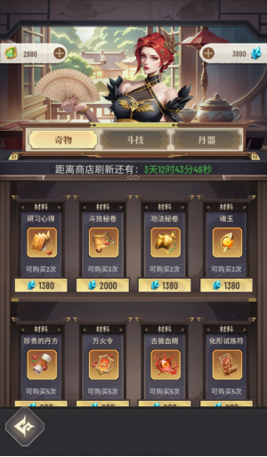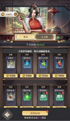 而在取得炼丹配方后,下一步便是要着手获得各式的丹药材料,而丹药的材料取得地点多半当集中在历练地图和集市 ,且商品都还要等待刷新才可以继续购买,因此如果有看到需要的商品,一定是优先买好买满。