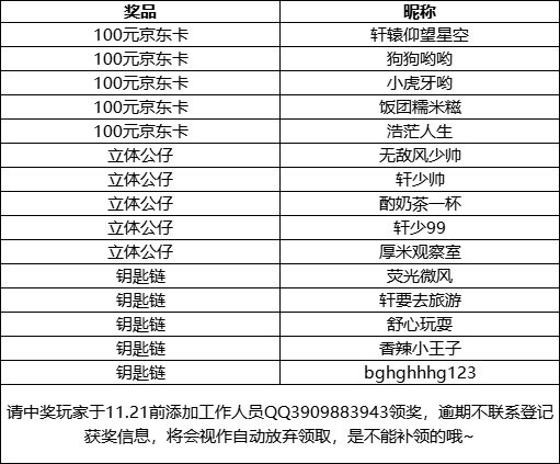5.中奖名单将在活动结束后的7个工作日内公布,请留意本贴更新状态,并根据指引联系官方,提交信息领奖;兑奖有效期在开奖后的7个工作日内,如果未能按期提交信息将失去兑奖资格;