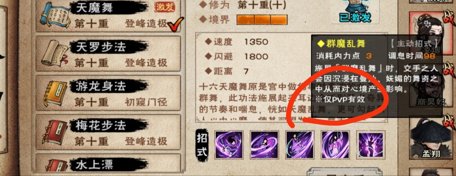天魔舞最后学满竟然只能pvp用,很意外。这是要设计专为武道(pvp)武学的节奏吗?