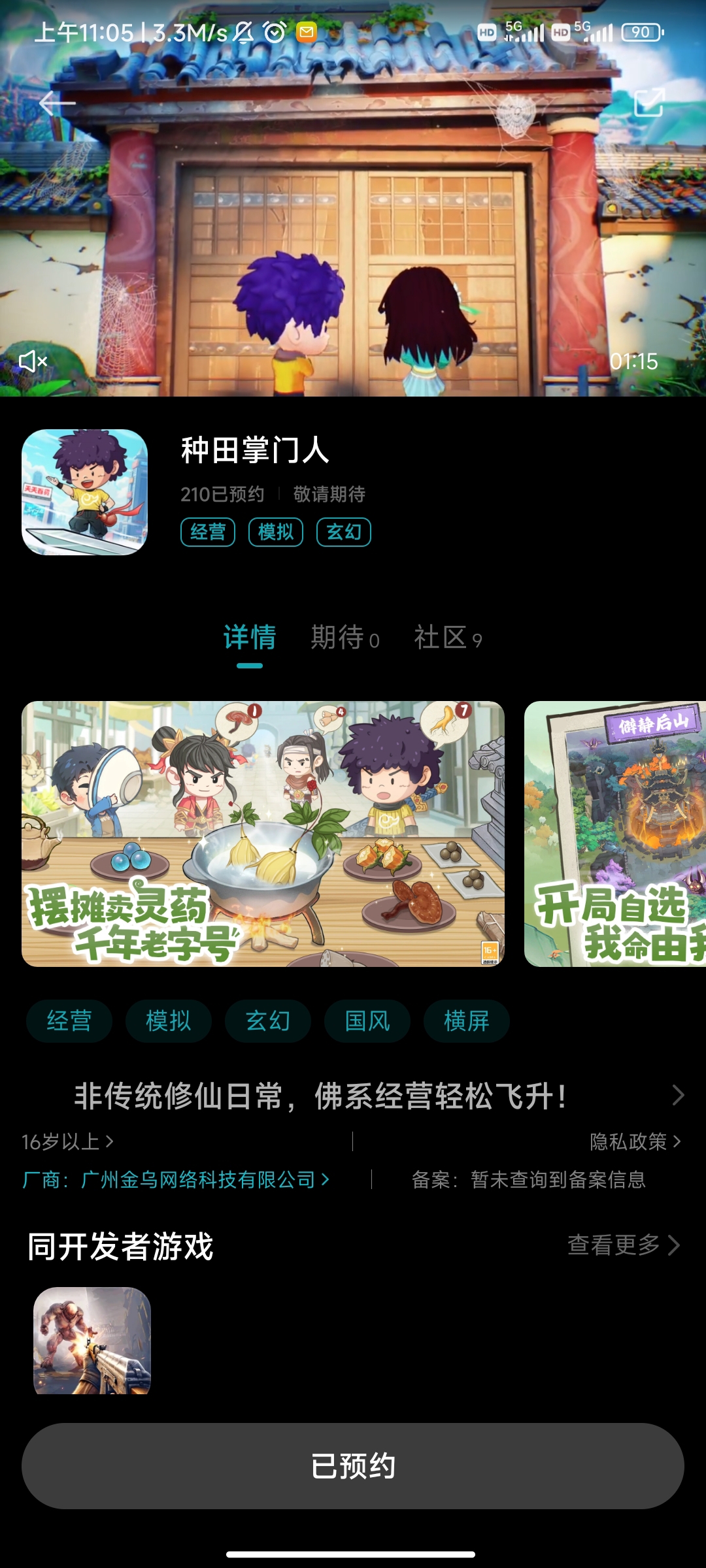 1、点击下方《种田掌门人》游戏的预约按钮、完成预约;