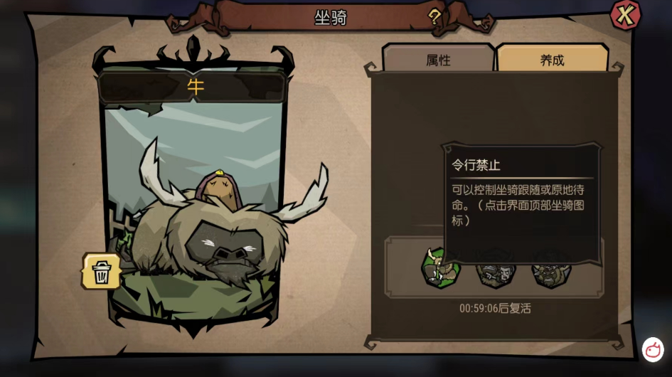 坐骑规则说明驯服坐骑后,在冒险时就可以带上坐骑一起啦,在冒险途中可以选择是否骑乘,在未骑乘的状态下,坐骑也会跟随左右保护你哦~