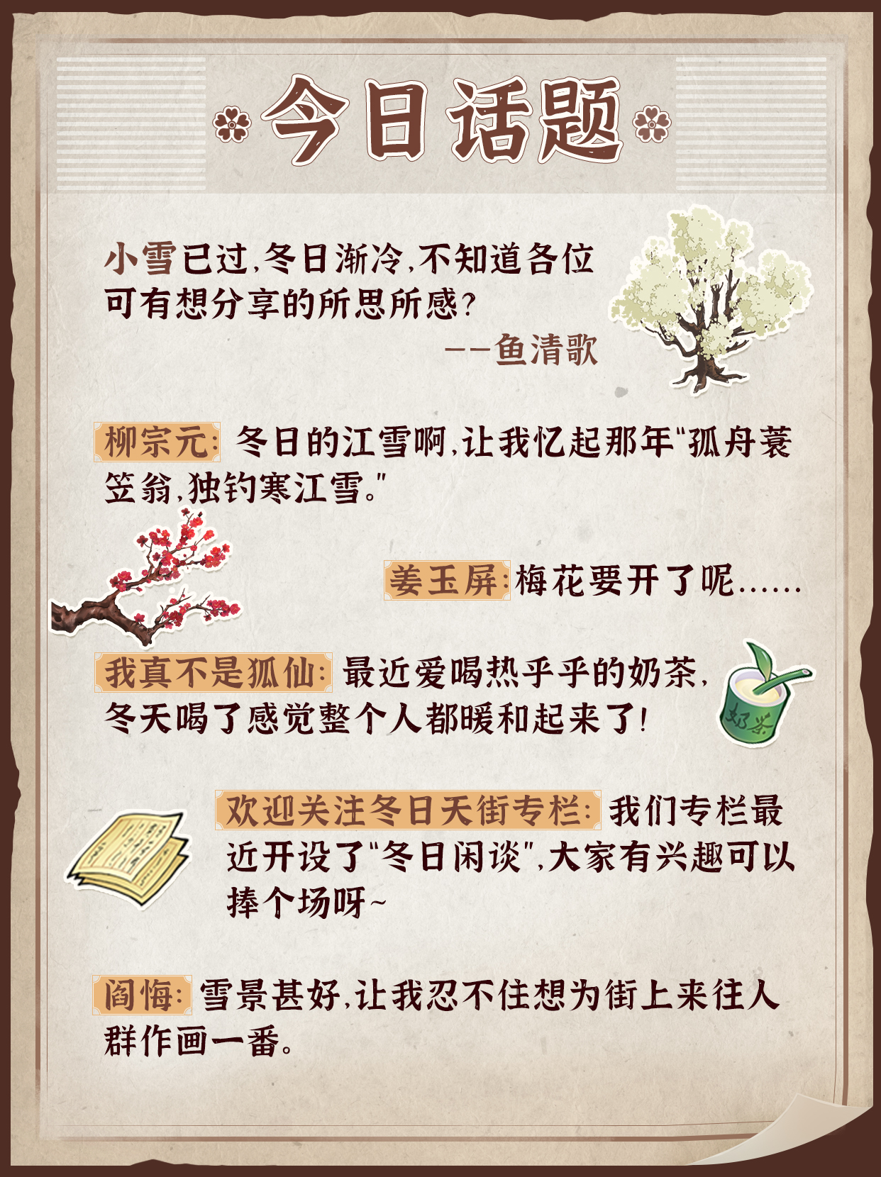 从文学杂谈到诗词歌赋,从人生哲学到今日吃啥,话题涵盖天南海北,跨度广泛。