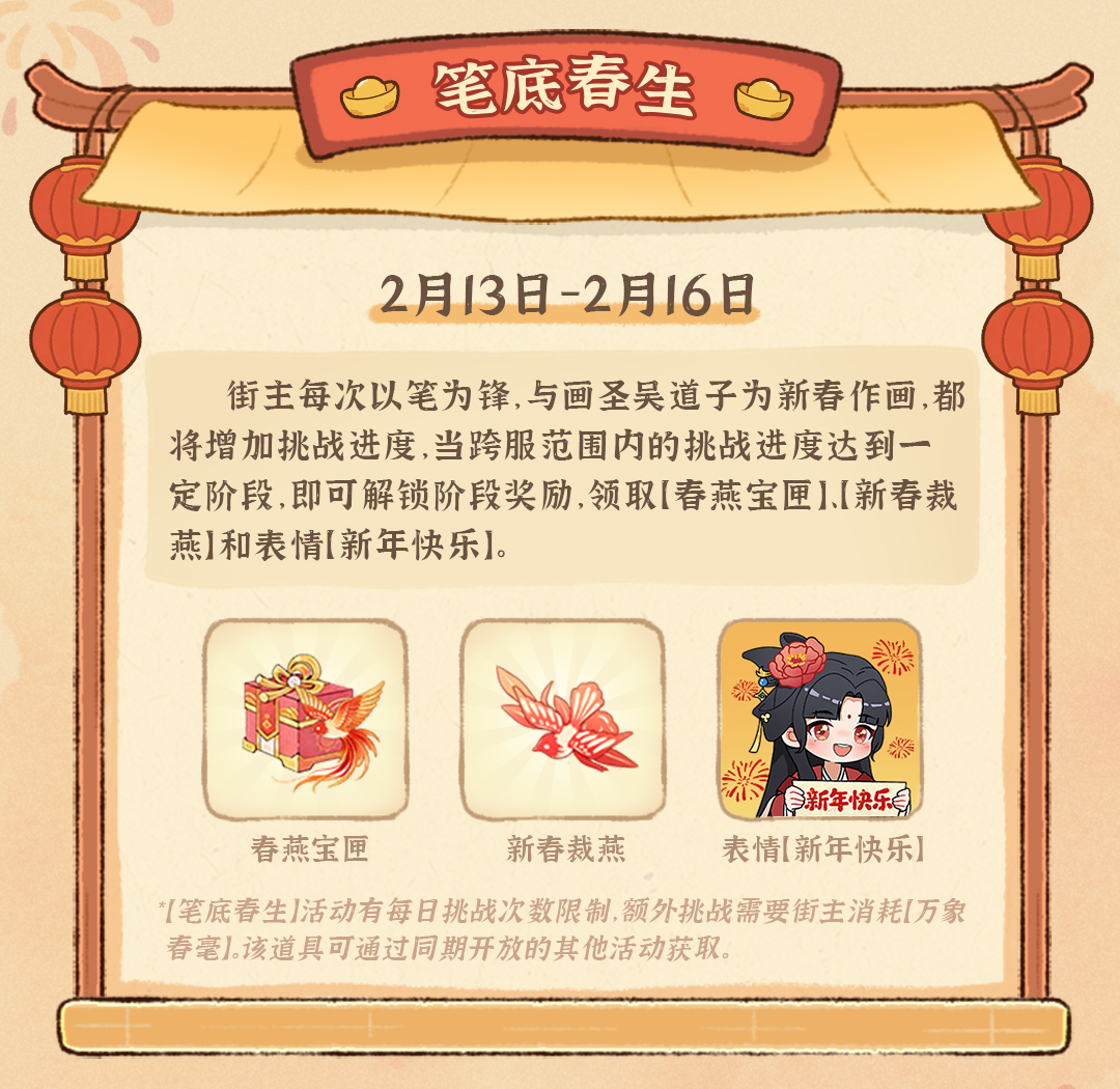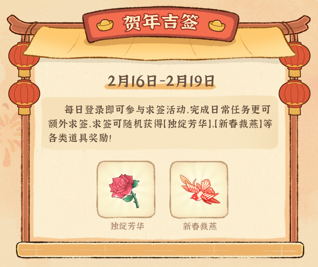 活动开启后,可通过主界面左上角「剪春绘年」进入活动。