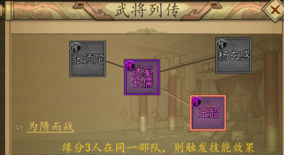 在这款游戏之中,每一个武将它都是历史上或者各种隋唐小说中曾经存在过的角色,在游戏里也中也对每一个角色进行了列传的编写,将武将的生平进行一一地介绍,玩家们也可以在游戏中对其进行一一的了解。接下来我们以宇文成都来为大家进行介绍,他是一个隋阵营的武将,具有多重属性,包括政治、兵力上限、统帅以及速度等等,这一些都是比较特殊的属性,能够在战斗的时候带来额外的效果。宇文成都同样也是能够率领4个不同的兵种,不只不过他更加专精骑兵以及枪兵。每一个武将拥有多个技能。一般拥有三个技能孔位,跟随武将的升星进行解锁。