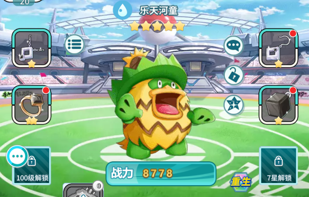 游戏中的宝可梦主要是以水火自然,神秘与邪恶这五种属性。另外还设置了辅助、物理、魔法、守护等等屈服,方便大家对于自己的精灵团队来进行搭配。每个精灵还可以配搭五个装备。我们以乐天河童来进行介绍,它属于水属性辅助系角色。特性包括我行我素生命与攻击提升。另外还有三个技能,求雨为攻击最高的精灵驱散负面并提升攻击力。摇晃雨可以复活己方单体,并且回复生命值,是一个非常强力的辅助经历。