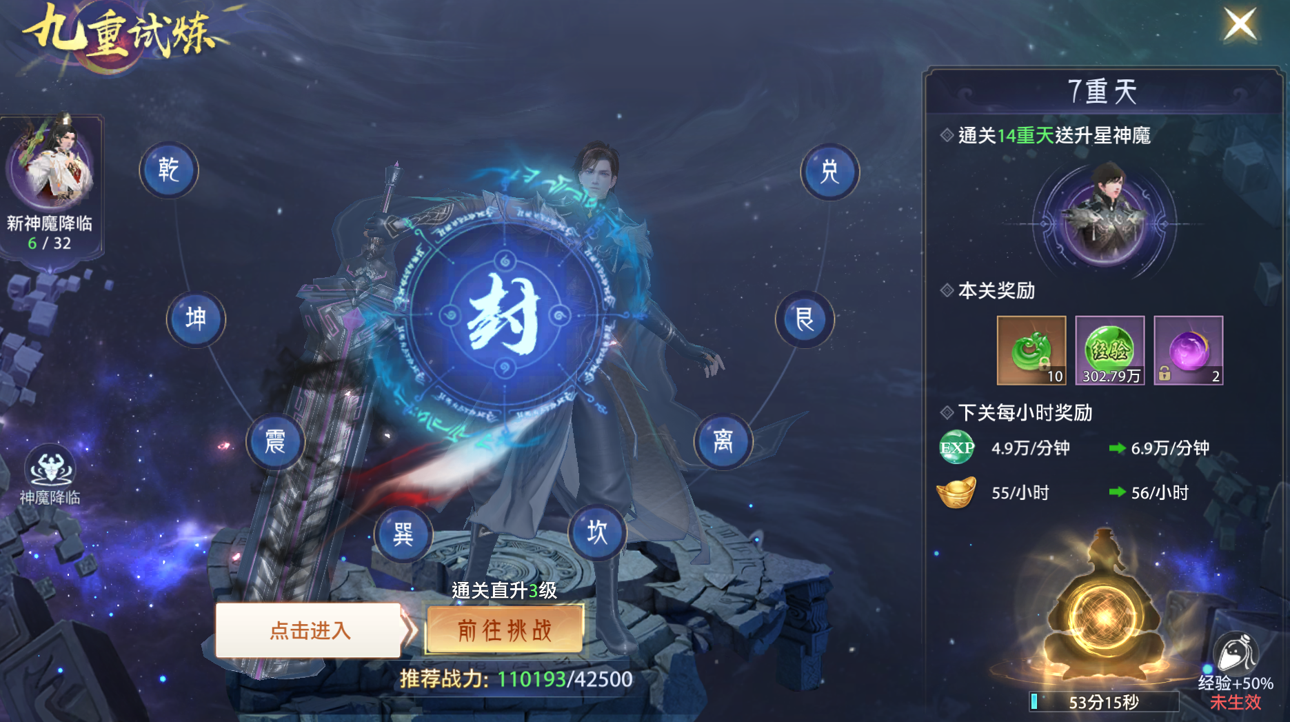 游戏独创“九重天劫”玩法,将传统修仙的“雷劫”转化为可视化战斗。每次渡劫需先完成“心魔试炼”(击败内心恐惧的幻象),再面对真实雷劫。雷劫分为“三才劫”(风火雷)、“六合劫”(空间撕裂)、“九幽劫”(心魔具现化)三个阶段,玩家需根据劫难类型调整战术。例如,“六合劫”中,空间裂缝会随机传送玩家位置,需利用轻功躲避;而“九幽劫”的心魔会复制玩家技能,需优先击杀分身。渡劫成功不仅提升境界,还会解锁“天地法则”技能。如元婴期可领悟“引力法则”,吸引周围敌人;渡劫期则能使用“时间法则”,短暂减速敌人。这些技能彻底改变战斗节奏,让高阶对决充满策略深度。