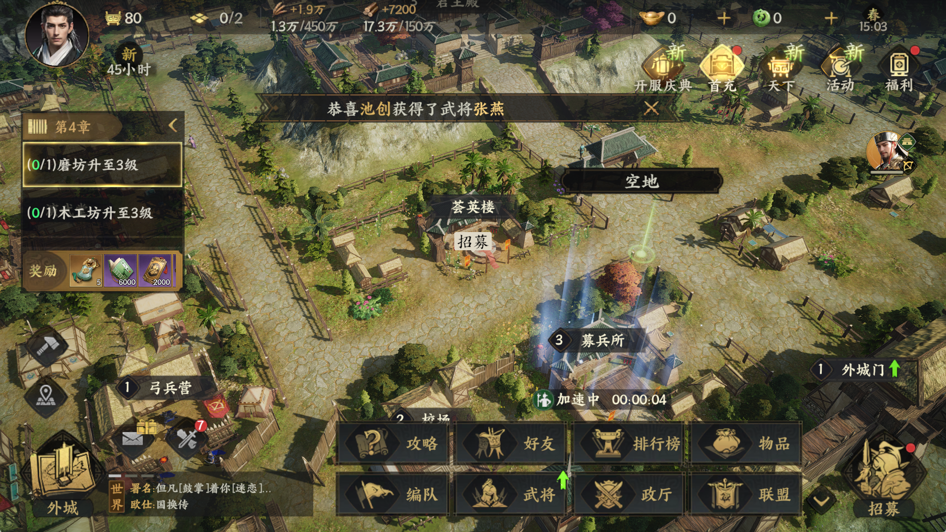 黑山军讨伐:联盟协作型PVE玩法,需先摧毁沿途弩台(投石车攻击效率提升200%),再清剿营地内的精锐部队。最终BOSS“张燕”拥有“溃逃”技能,当兵力低于30%时会召唤山贼援军,考验联盟成员的集火能力。实测数据显示,控制3座以上烽火台的联盟,资源产量提升28%。烽火台攻防:联盟间战略要地争夺战,烽火台城防值归零后,周边分城将失去保护。攻方可建造“冲车”提升破城效率,守方则能布置“陷马坑”延缓骑兵冲锋。在S2赛季“荆州争夺战”中,某联盟通过“声东击西”战术,先佯攻南郡吸引火力,再集结主力突袭江陵烽火台,最终以损失2座分城的代价控制了整个荆州资源带。陈情任务:日常资源获取渠道,每日12:00/18:00刷新。任务类型涵盖“剿灭山贼”“护送商队”等,完成后可获得武将经验书、装备图纸等奖励。高级任务“三顾茅庐”需联盟成员协作完成,成功招募诸葛亮可获得专属兵书《隆中对》,使全体谋士技能伤害提升10%。