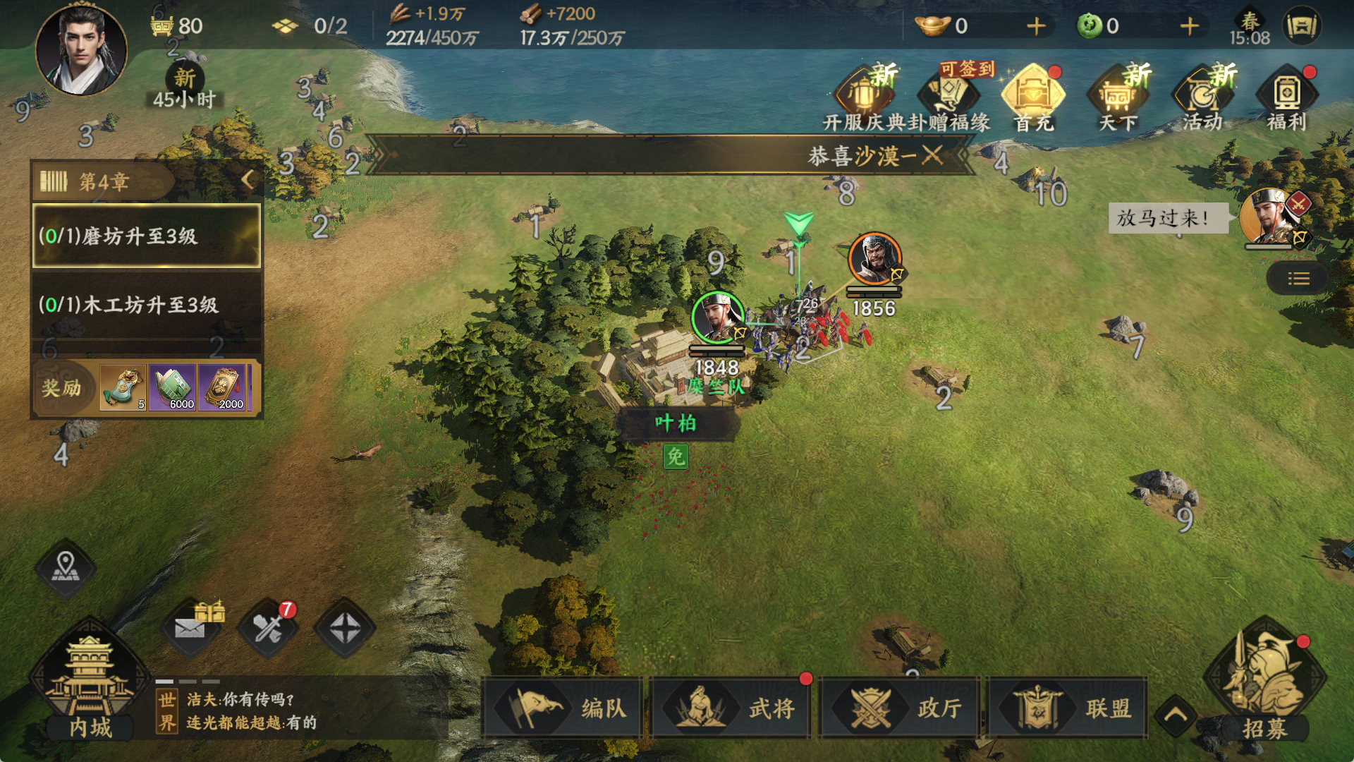 游戏通过三大机制保障竞技公平性,零付费加速,彻底移除资源加速道具,建筑升级时间仅与城主府等级挂钩。例如,10级城主府升级需12小时,付费玩家与零氪玩家时间完全一致。定向卡池保底,每60抽必出橙将,且前30抽享受50%概率提升。实测S1赛季零氪玩家平均56抽获得核心橙将,付费玩家平均52抽,差距不足10%。跨服匹配算法,PVP对战采用ELO评分系统,确保战场双方实力接近。在“巅峰对决”活动中,零氪玩家组成的联盟“青州兵”凭借精准的骑兵突袭战术,击败了多名重氪玩家的队伍,最终排名服务器第三。