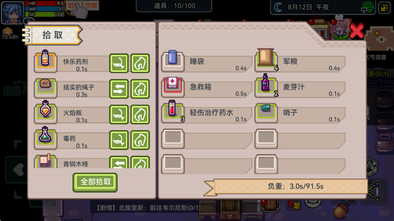 《伊洛纳》的自由度建立在精密的规则系统之上。玩家需时刻关注角色的饱食度、睡眠值与负重上限,饥饿时啃食路边腐烂食物可能中毒,超重移动会大幅降低行动效率,而以太风暴的随机降临更可能让角色变异出额外肢体或诡异能力。这种“生存压力”与“自由探索”的矛盾,迫使玩家在冒险中不断权衡,是冒险潜入龙窟夺取秘宝,还是先回城镇补充补给?